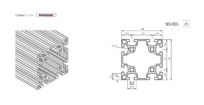 Profilo in Alluminio 90x90 C.10 Leggero PR090090L
